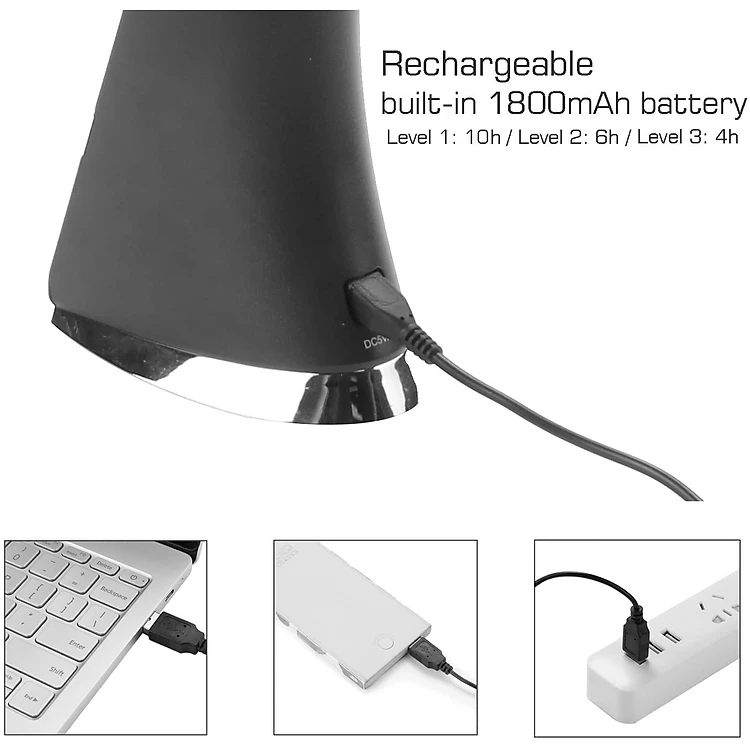 Đèn được trang bị pin sạc 1800mAh, cho phép sử dụng không dây từ 4–10 giờ, thuận tiện cho học tập, làm việc hoặc đọc sách mà không cần dây điện vướng víu.