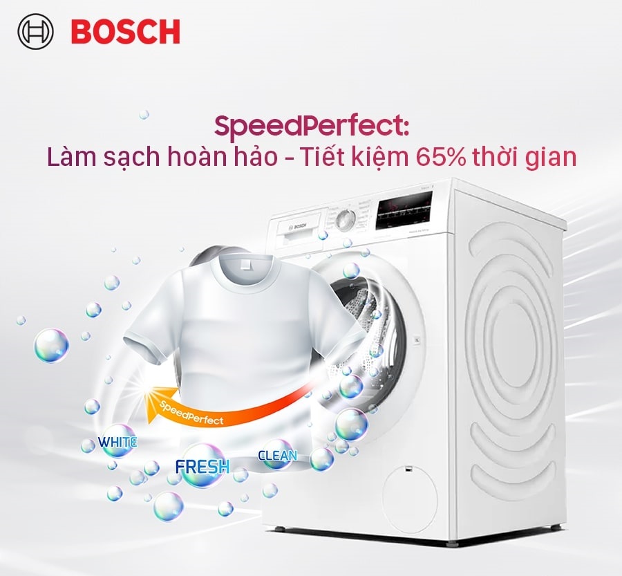 • Chương trình SpeedPerfect & EcoPerfect giúp rút ngắn thời gian giặt đến 65%tiết kiệm năng lượng lên đến 50%.